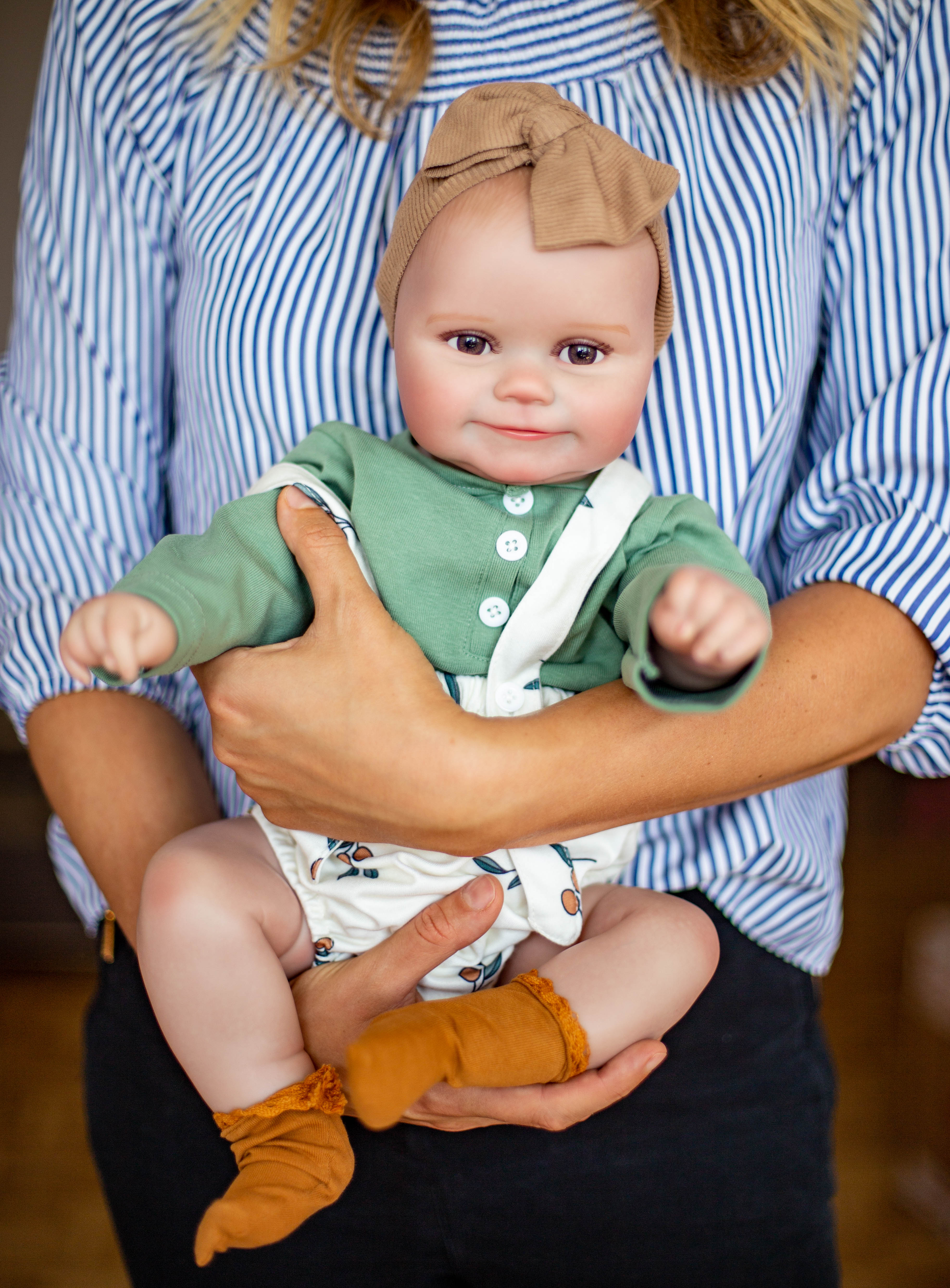 Dziewczynka nie tylko wygląda jak dziecko , ale również swoją wielkości przypomina prawdziwego bobasa, ma 48 cm i waży 1,1 kg .Została wykona w całości z mięciutkiego, bezpiecznego dla dzieci materiału winylu.
