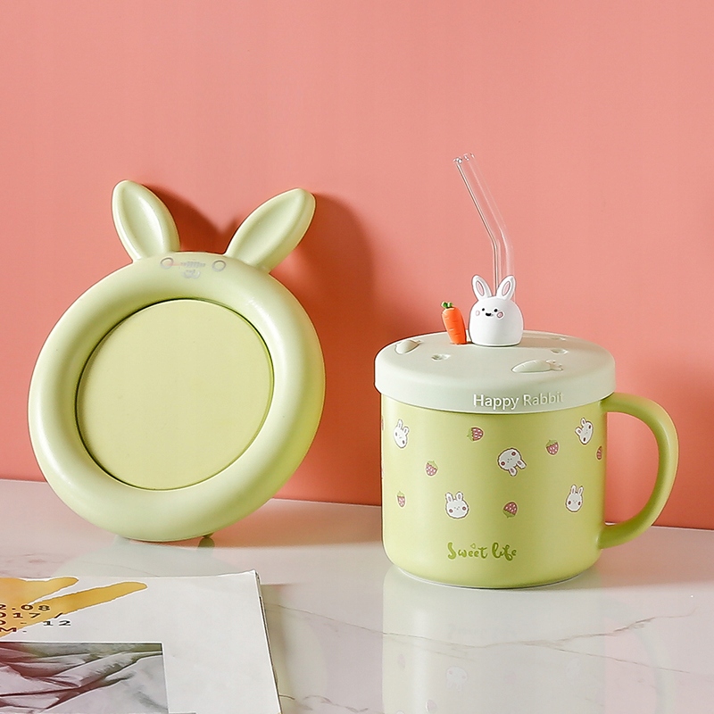 ZESTAW KUBEK Z PODGRZEWACZEM + Łyżka + Kabel USB PREZENT KUBEK ŚWIĄTECZNY królik zielony